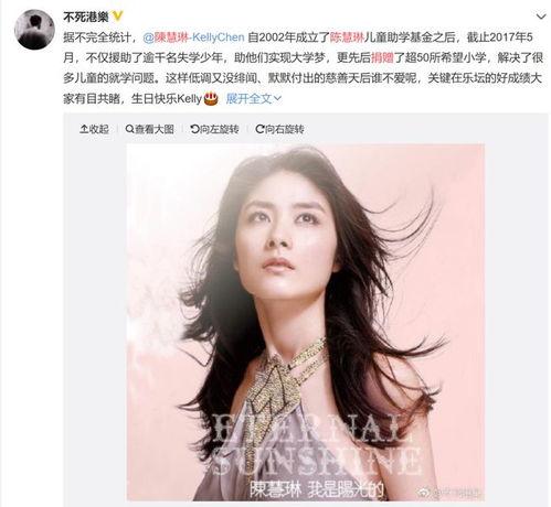 陈慧琳不仅在娱乐领域取得了辉煌的成就,她还积极参与慈善事业,用自己的力量回馈社会。